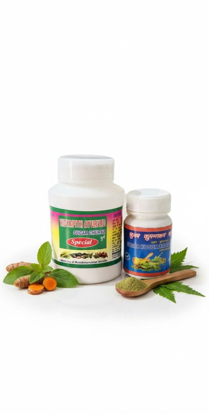 VIDYAPITH AYURVED SUGAR CHURNA + VATI is designed as a supportive herbal formulation for individuals managing both Type 1 and Type 2 diabetes. It should be used alongside prescribed medication, a balanced diet, regular physical activity, and under proper medical supervision for safe and effective results.